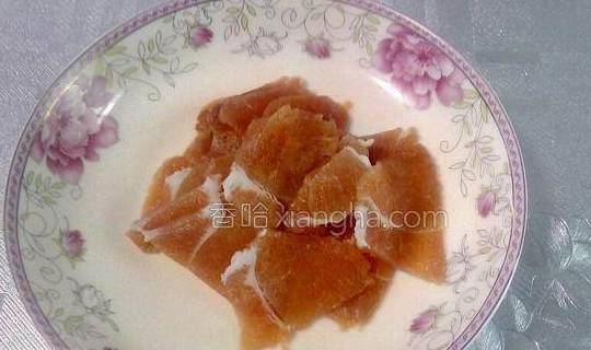 3.将肉片放入碗中,放入生抽、料酒、淀粉,抓拌均匀,腌制10分钟。