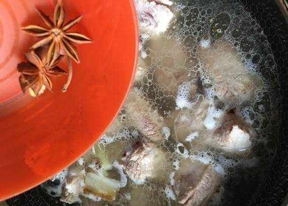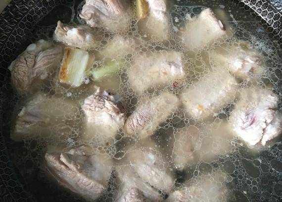 猪排骨 800克、葱段 2小段、姜片 几小片、八角 2个、老抽 1勺、料酒 2勺、生抽 2勺、白醋 2勺、白糖 25克、食盐 4克