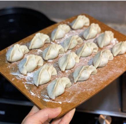 饺子馅拌好,擀好饺子皮,就可以包饺子了,在煮饺子的时候,等到锅中的水烧开,放入一点盐,再放入葱段,盐可以增加饺子皮的筋道,而葱有提香去腥的作用,这样出锅的饺子怎么吃都不腻,饺子放入锅中后,煮三分钟出锅就可以了,别忘了每一分钟加一次凉水。