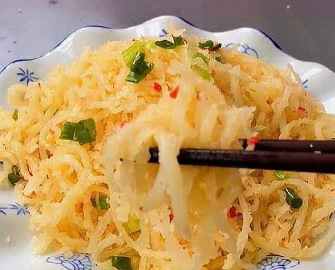 今天我要跟大家分享的是一道只有在国宴上或是去到海南当地才能见到的美味佳肴,它就是“粉蒸土豆丝”的做法,这是一道非常具有地方特色的海南美食。要说起海南,其实大部分的海南人都比较重口味,大家平时都特别喜欢吃辛辣的食物,尤其是那道无人不知无人不晓的黄灯笼辣椒酱,我每次回海南老家都会带好几瓶黄灯笼辣椒酱回来,鲜辣一绝,而且好吃不上火,辣而不呛,即便餐桌上只有一碗辣椒酱,我都吃得一脸满足。除了海南的黄灯笼辣椒酱之外,我最喜欢吃的就是妈妈做的粉蒸土豆丝了,我每次能吃一大碗,香辣爽口,越吃越过瘾,土豆丝的外表包裹着一层淀粉,经过加工蒸制后再拌上精心调制的料汁,色泽晶莹剔透,看着就能让人垂涎三尺,所以春天就该吃这菜,蒸一蒸就出锅,营养好吃,保护心血管,全家受益,吃着比肉还解馋!