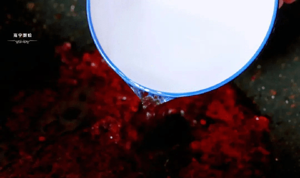 3、待我们的辣椒面和豆瓣酱炒出香味之后,这时候我们就可以在锅里加入清水了,加入之后,可以烧一会让水烧开;