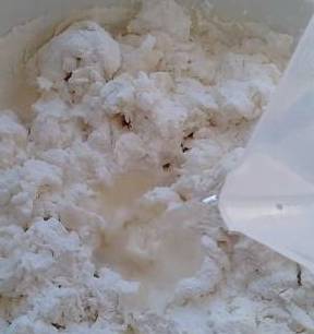 300g面粉,120g开水和60g凉水,和成面粉,揉成面团。