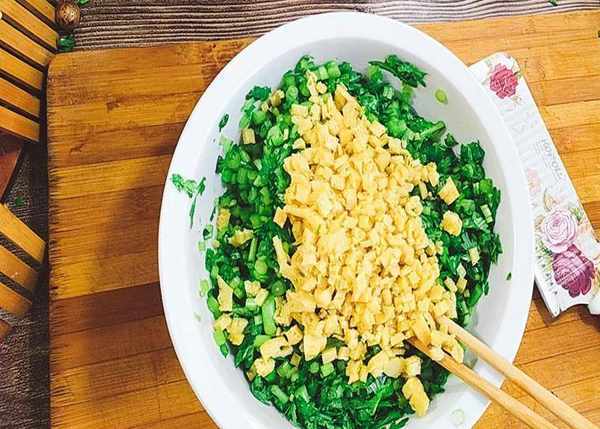 切好的茼蒿在包制的时候再调味搅拌。否则茼蒿水分会被杀出来。就没有鲜嫩翠绿的感觉了。蒸制时间要控制在13分钟。