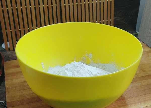 取150克的温开水,加入5克的酵母和5克的糖,浸泡5分钟让酵母和糖在温水中充分的作用,发酵成酵母水。300克的普通面粉中加入3克的盐搅拌均匀,少量多次的倒入酵母水,搅成面絮状,然后揉成光滑的面团。放在大约25℃的地方醒发至原来的两倍大。
