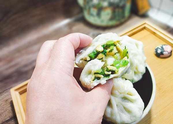这样一份鲜美的茼蒿包子就蒸好了。外皮暄软内里鲜嫩,也最好的保存了茼蒿的营养。