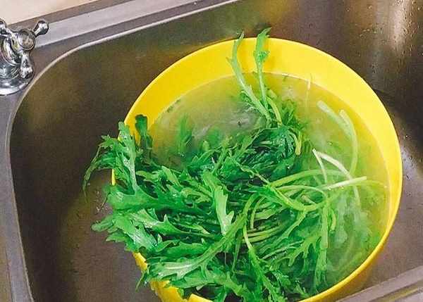 1.在清洗之前先用盐水将茼蒿浸泡半小时,用来去除茼蒿中的虫卵和农药残留。