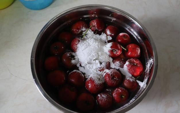 2.山楂浸泡在水中,加入少许淀粉