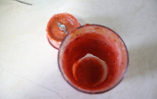 8.稍微放凉后,放入榨汁机中打成细腻的山楂泥