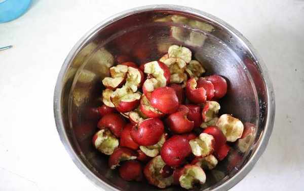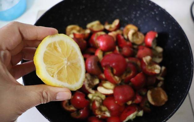4.山楂去蒂去核,放入锅中