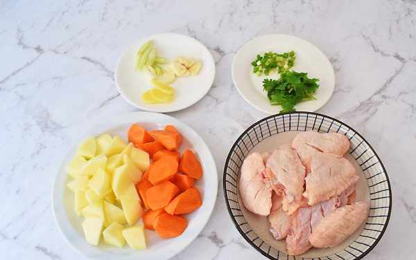 制作过程:1、鸡中翅洗净正反两面各划两刀,土豆去皮切成小块,胡萝卜去皮切成小块,大葱切片,蒜切片,姜切片,香菜切寸段,小葱切葱花