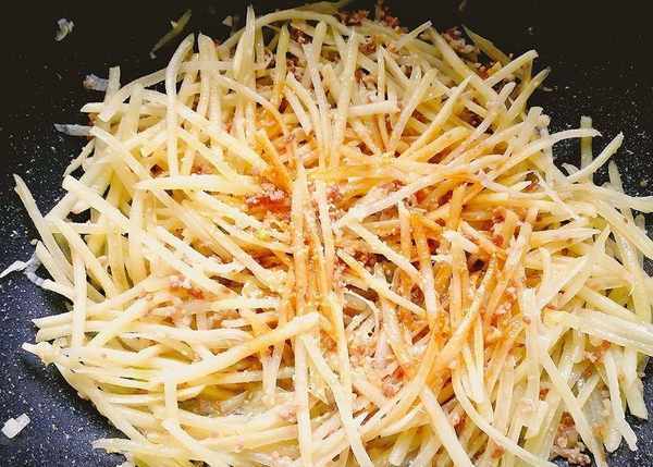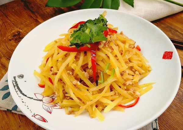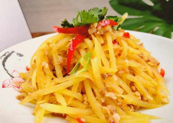 大多时候土豆也非常适合用来做炖煮,因为炖煮后的土豆口感非常绵密松软,不过切丝后用盐拌一拌,简单的和肉末炒一下,土豆丝的口感就会变得很不一样,不生脆,很脆嫩,非常爽口下饭,吃着非常不错,大可以尝试尝试。