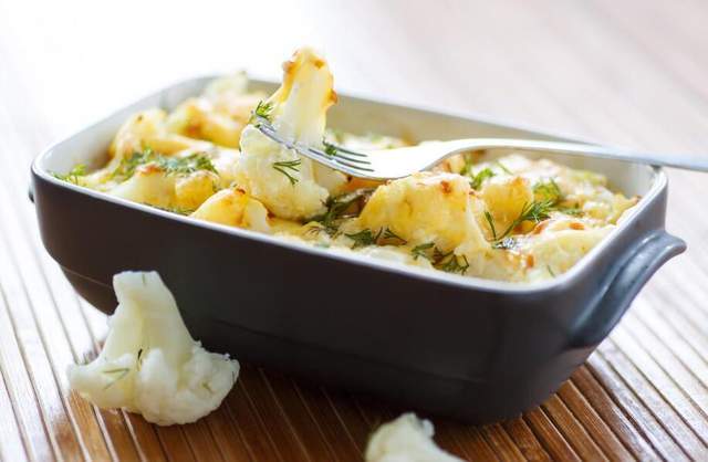 5、在炒菜花的同时,将奶酪芝士均匀地放在菜花上,盖上锅盖,煮5分钟左右,直到奶酪芝士融化并覆盖在菜花上。