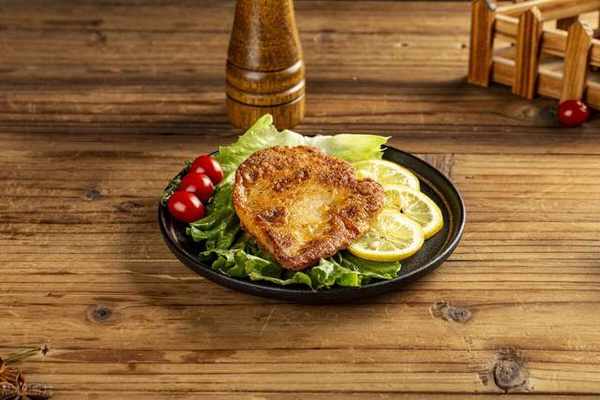 4、在平底锅中加热一些橄榄油,将鸡胸肉放入煎炸,每面煎3分钟左右或至熟透。