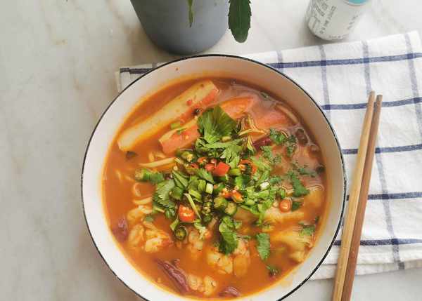 三分钟让你学会麻辣火锅面,懒人做法,简单易学,过足火锅瘾!这段时间可在家憋坏了吧~是不是尤其怀念那口麻辣过瘾的涮火锅!小编就对那口想死了,毛肚、金针菇、鸭舌还有最爱的涮牛肉~与其空想,不如先降低难度,学学今天小编给大家带来的这道麻辣火锅面,麻辣鲜香,让你一饱口福,而且上手简单,足不出户过足火锅瘾!心动不如行动,接下来就跟着小编一起来学习这道麻辣火锅面吧!面条、火锅料备好,这里的火锅料可以选择自己喜欢的口味,食材建议荤素搭配,可以按菜谱来,也可以自己准备,最重要的其实是那口麻辣鲜香!