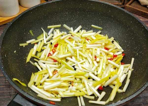 2、大火快炒,时间不要太长,太长口感就老了,一分钟不到韭黄就软了