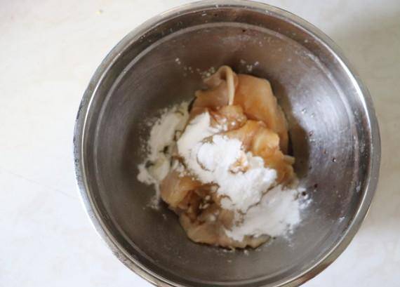 6.最后加入一勺的玉米淀粉,搅拌均匀,腌制10分钟