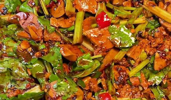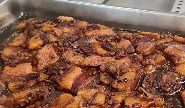 他家15元1个人,每天20个菜随便吃,就是这样还有人嫌贵,觉得菜品不好,没有荤菜。那我们就一起来看看,菜品到底怎么样。每天可能会做少许的改动,就以一天来说。首先是本地人很爱吃得咸烧白,肥瘦相间的五花肉,配上宜宾芽菜,味道咸鲜,猪肉里的油脂流到芽菜里,味道浓郁又下饭。