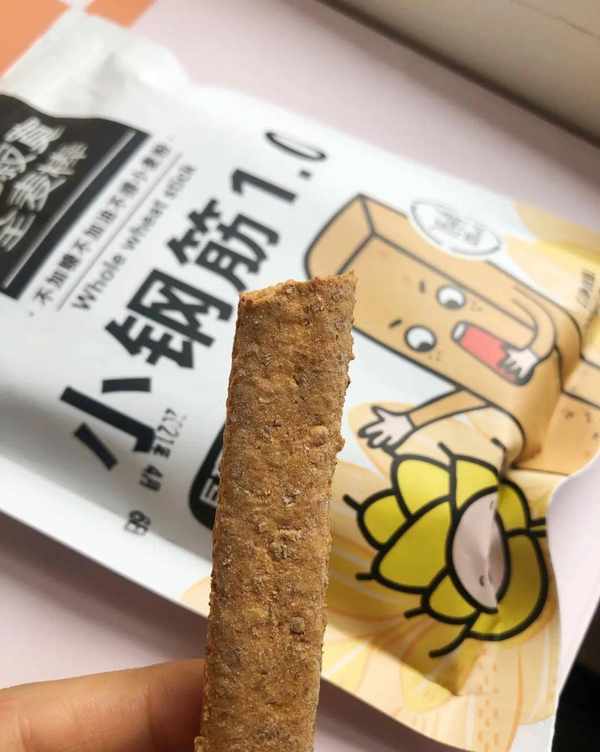 小钢筋:这是一个零食,据说是全麦棒,但是小编尝试了,确实非常的硬,手砍不断的那种,反正你要是往嘴里放的话,那真是一个很好的磨牙棒,长个立事牙的话,不行你就用它磨,看看能不能磨掉!