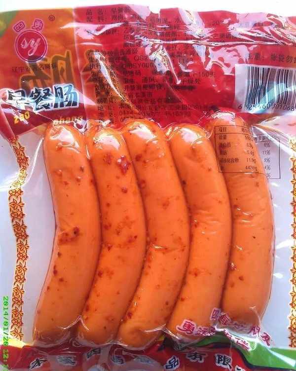 早餐肠:这是看起来很正常的一个香肠,外表看上去应该是辣乎乎的那种,但是早餐应该不会很辣,所以吃的时候还是抱很大的期待的,但是后来打开发现香肠外面的皮是辣的,里面就是普通的肠,味道一般,辣味做梦尝尝吧!