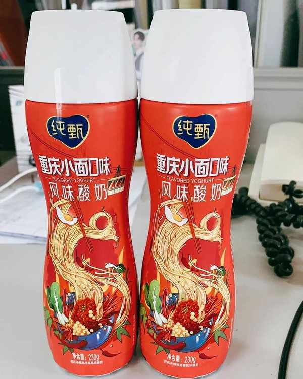 酸奶:酸奶没什么问题,但是重庆小面味道的酸奶是真的没吃过,而且这味道真是没见过,也不太敢轻易尝试,喝一口下去有点咸有点辣,小口小口喝还算能忍,但是大口喝容易吐出去,还有点酸了吧唧的味道!