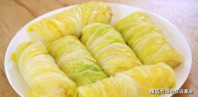 3、将包好的馅料铺在白菜叶上,卷成卷状。蒸锅里的水烧开后,转中火蒸10分钟即可食用