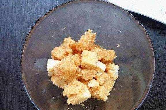 将馒头加入到蛋液中,拌匀,使馒头均匀附着蛋液。