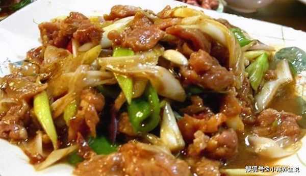 3.将油倒入锅中。当油热到60%时,倒入羊肉片并搅拌。期间沿锅边浇少许料酒。当你看到羊肉没有红色血丝时,把它放在盘子里待用。