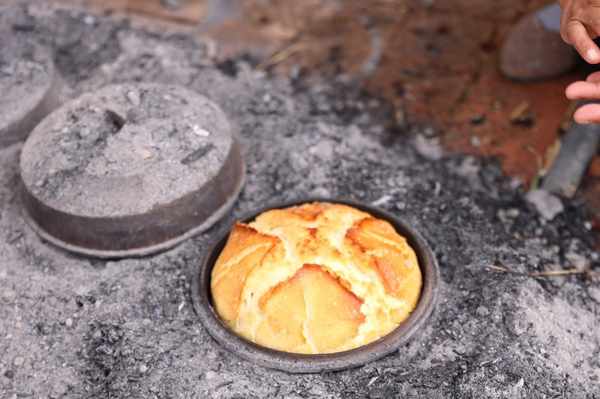 焜锅馍馍是西宁大街小巷中常见的一种馍馍,面团发好加入清油,然后涂上红曲、姜黄等色素来增添馍馍的色泽,之后卷成层层叠叠红、黄、绿几色相间的面胚,放入特制的圆形焜锅中,盖上盖子用草木灰覆盖后慢慢烤制,烤好的焜锅馍色泽诱人,外酥内软,吃起来香酥可口,若是蘸着加了油酥的茯茶,味道真是脆酥爽口,回味悠长,这也是西宁人的家乡味。