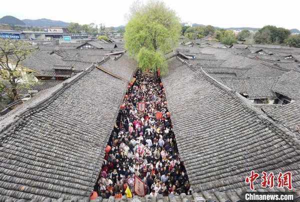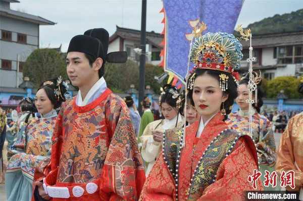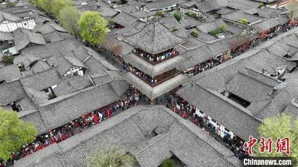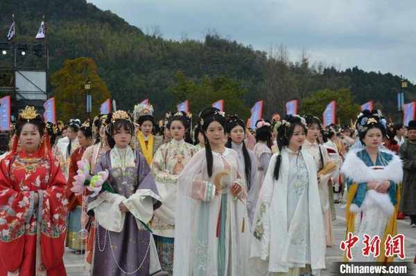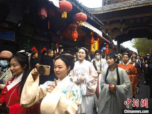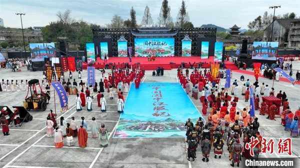 中新网阆中3月18日电(王爵)18日,中华民族服饰展演暨阆中汉服纪在四川省南充市阆中古城丝绸广场启幕,全国各地传统文化爱好者及游客数万人汇聚阆中古城,共襄汉服文化盛举。