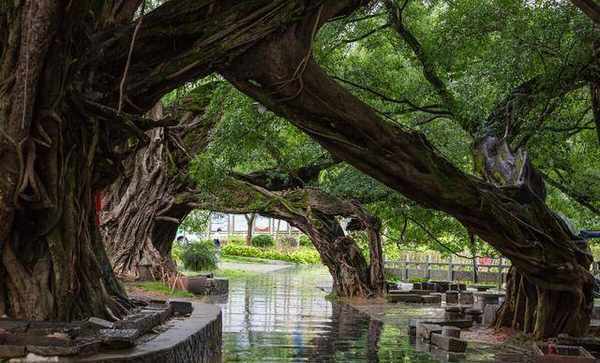 榕津古镇以榕树多、榕津河沿街而过闻名于世。榕津古榕被称之为“华夏第一榕”,其中最大的一棵被称为月老古榕,当地村民们也一直将古榕当作神仙祭拜。虬枝凌空,拱如明月,绿叶浓阴覆盖着由盘龙根须构成的天然雕饰拱门,形同鹊桥,又似月老牵线搭桥,让世上有情人喜结连理。