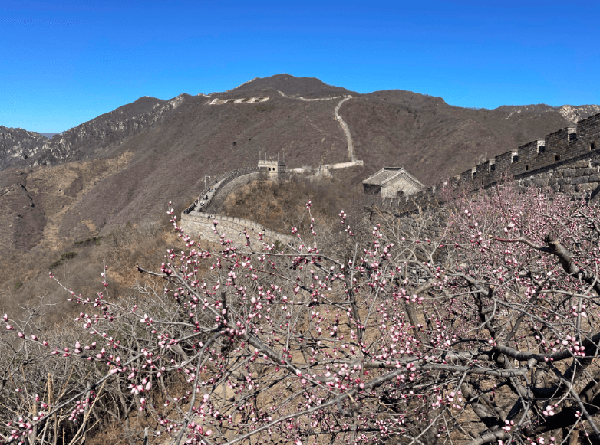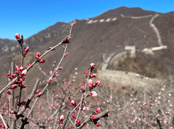 在距城区70余公里的怀柔慕田峪长城景区,山桃花已经在春风中绽放。预计3月底,长城两侧的山花将迎来盛花期。