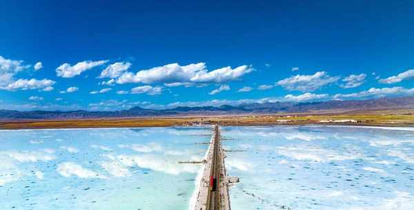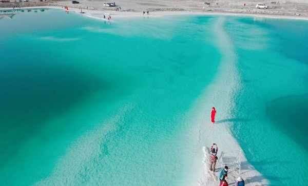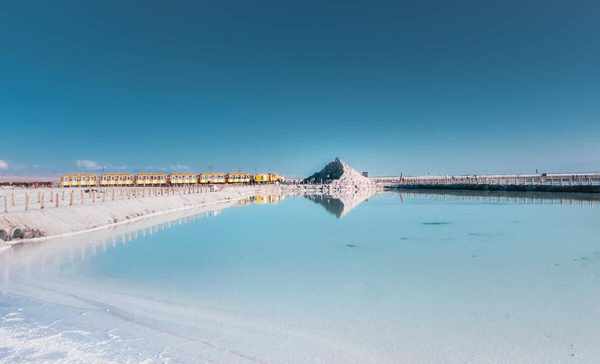 南美的天空之境在玻利维亚,中国的天空之境在这里。茶卡盐湖是固液并存的卤水湖,镶嵌在雪山草地间而非戈壁沙漠上。湖面平静没有一丝水花,如同一面反射天空的镜子。可以乘小火车深入湖中观光,可以透过清盈的湖水,观赏形状各异、正在生长的栩栩如生的朵朵盐花。