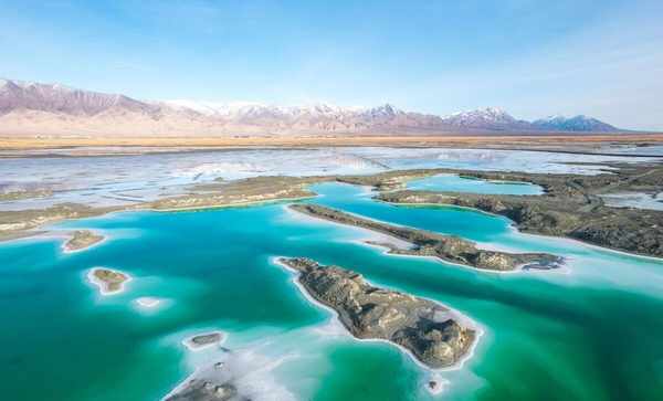 形状各异,色彩丰富的盐池在柴旦湖中四处洒落开来,还真像大珠小珠落玉盘,宛如翡翠。翠绿的湖泊让人觉得舒适宁静,在这拍的照片,都带有些许遗世独立的感觉。