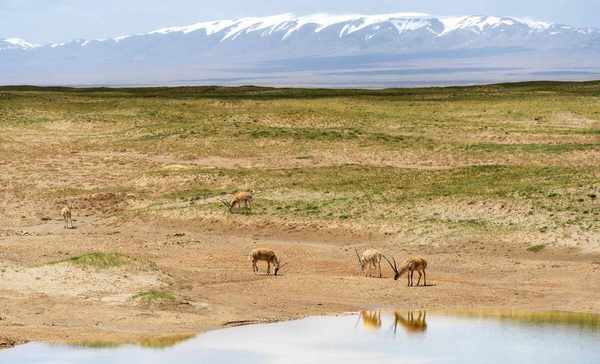 辽阔的大地向远方伸延,无边无际的荒原,随处可见的藏野驴和野牦牛。这里海拔4600米以上,干旱寒冷、空气稀薄、生态脆弱,是人类“生命的禁区”。 路边时不时的出现藏羚羊,三五成群,并不怕人,不能打扰,只能远观。