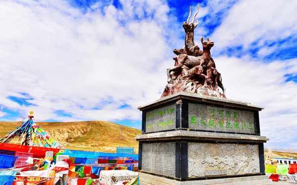 从唐古拉山到昆仑山,这一路近500公里,就是可可西里地区,沿途都是平缓起伏的低山和高海拔的丘陵,路上除了青藏线来往的货车,几乎是不见人烟。昆仑山垭口广场上有索南达杰纪念碑和雕像,下面不远处是烈士墓,山脚下有索南达杰保护站。