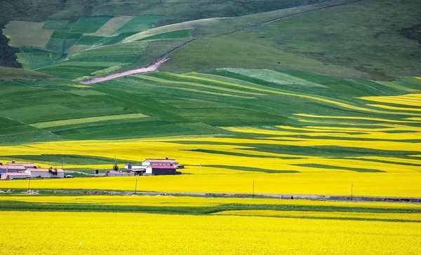 门源是北方最大的小油菜种植地,种植面积可以和云南罗平匹敌,绵延数十公里。这里的油菜花花期不是在春季,而是在夏季。开车行驶在门源的油菜田,整个油菜花田犹如金黄色的大海一眼望不到头,在高原的蓝天白云和雪山的映衬下,有一种铺天盖地的大西北气概。