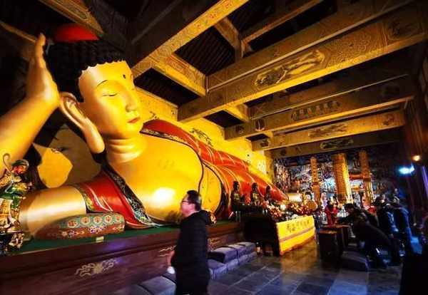 在寺庙里礼佛,就看到那尊有名的卧佛。卧佛庄严,两边墙壁上也有多种人物的雕塑,不过要和水陆庵的相比,就没法子了。
