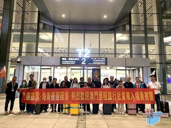 3月17日晚23时,从澳门至海口的HU7936航班落地美兰国际机场T2航站楼,这是国内入境旅游正式开放后,首批进入海南的入境旅游团队,也是海口往返澳门航线恢复后第一批从澳门入境海南的旅客。