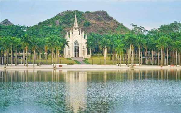 当面前出现一座白色教堂的时候,还是让我觉得有点惊喜,椰林高耸林立,倒映在爱琴海留下动人的身影,草坪外围衔接一片白色沙滩,营造出浪漫温馨的氛围。新人将此作为户外婚礼圣地,游客也可以来沙滩嬉戏玩耍,不管是拍摄照片和视频,都很唯美。