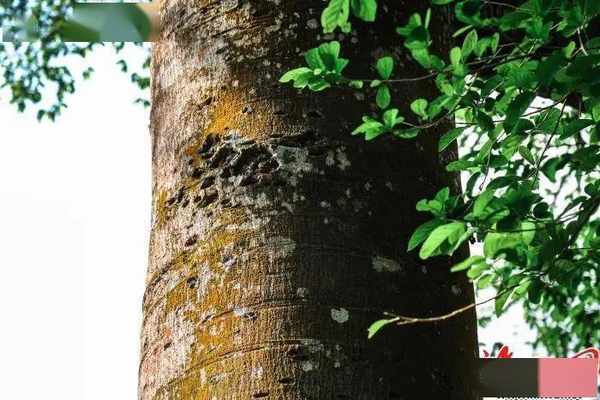 沧桑的树干留下累累弹孔。海口网记者颜绵程 摄