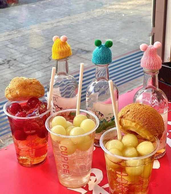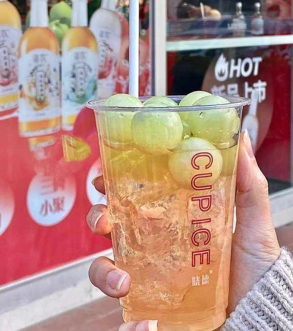 颜值很高的一款很清新的一款,玫瑰味+荔枝味,搭配樱桃葡萄冰,味道非常浓郁可口。