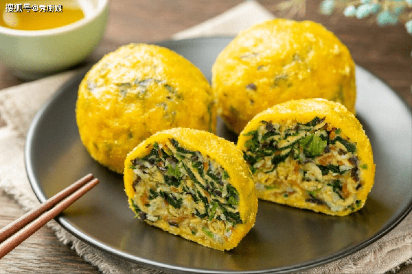 3.取适量菜馅,团成团子,表面裹上一层玉米面,然后用手挤压菜团,再裹上一层玉米面,反复4-5次后,将菜团子放入锅中蒸,水开上蒸汽开始计时,蒸8-10分钟后,关火出锅!