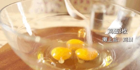 1.鸡蛋打散后,撒上盐、鸡精根据自己的口感来