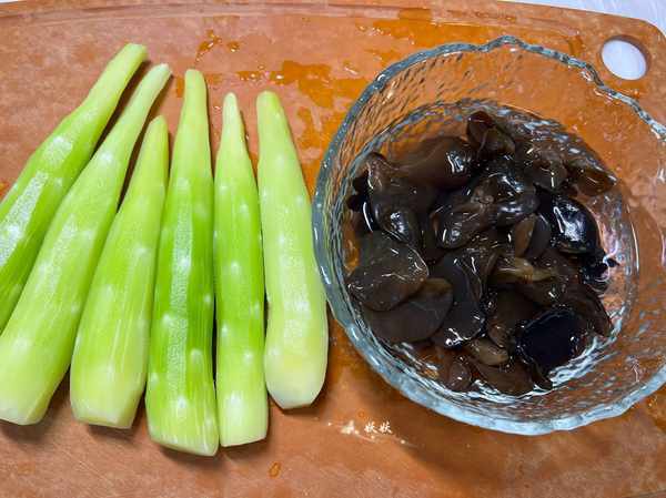 1,莴笋去皮,木耳可以买鲜木耳,也可以用干的自己泡发,泡发好的木耳一次吃不完,可以勤换水,在冰箱里冷藏适当延长点时间,但超过一天最好就不要食用了。