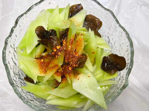 食材: 莴笋,木耳,盐,米醋,辣椒粉,植物油,芝麻油。