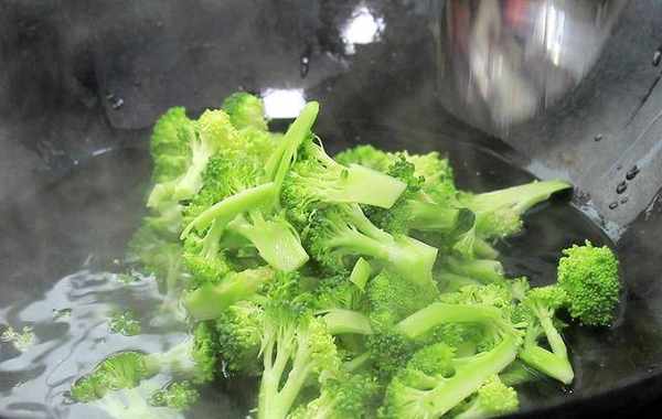 2.锅内烧水,加入食盐2克入底味,加入食盐为防止维生素的流失,并且也能使西蓝花色泽翠绿,放入西蓝花,煮1分钟左右,把西蓝花倒出控干水分备用。