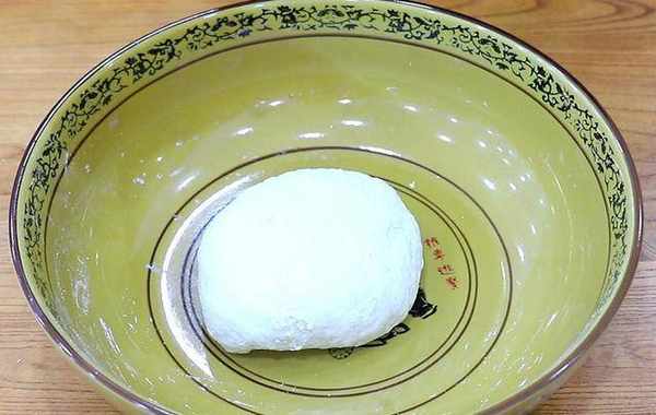 1.盆中加入500克的普通面粉,撒入3克的酵母,加入常温水,先揉成面絮,揉至没有干面粉再按压成面团,盖上锅盖发酵1个小时。