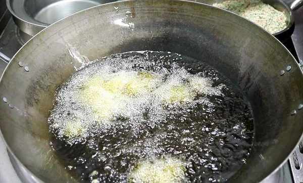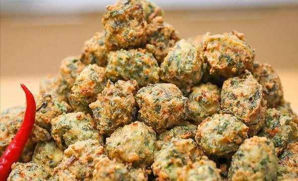 4.全部定型以后再一起回锅复炸一遍,复炸既能上色使丸子外酥里嫩,还能逼出多余的油脂防止发腻,复炸的时间不要太久20秒钟即可,美味即成。