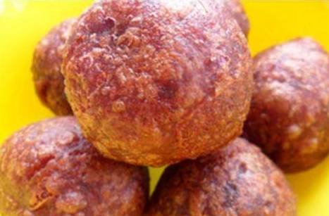 5、封口,再包成圆球状,放入热油中炸熟捞出即可,趁热食用最香。