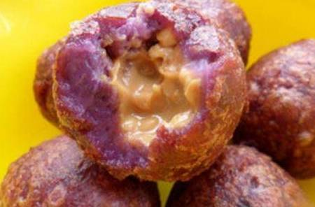 自从上次买了2.5一斤的紫薯,算是有了让我可着劲儿折腾的东西啦。紫薯除了可以用来烤着吃,蒸着吃,做成紫薯泥吃,还可以怎么吃呢?和糯米粉一起包上自己做的的颗粒花生酱炸着吃,外皮甜甜糯糯,内馅满口生香,你一定还没吃过吧?快去试试吧,做法还是很简单的。